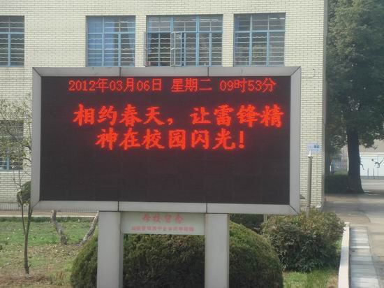 “学习雷锋好榜样,忠于革命忠于党……”这充满激情、斗志昂扬的歌声响彻雪中校园;“ 相约春天,让雷锋精神在校园闪光”、“雷锋精神永远不会过时,让行动与雷锋精神同在”等宣传标语,在电子屏幕上滚动显示。学习雷锋,更要落实在行动上,同学们积极参加公益活动。