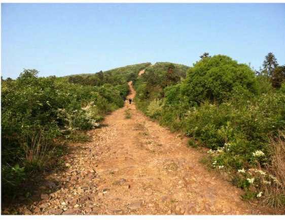 日出、山路